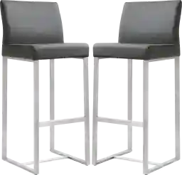 Furnish your kitchen or bar area in contemporary style with the Silas gray barstools (set of 2). The solid stainless steel frame provides a sturdy base, while the plush seat and footrest ensure maximum comfort. The combination of angles and gentle curves gives this stool an eye-catching appearance, while the neutral color allows it to match well with any decor. Assembly required.