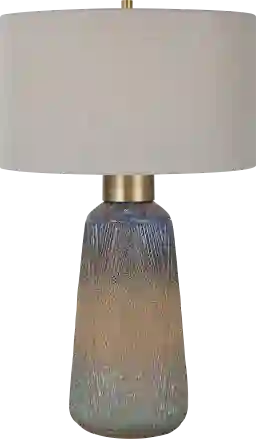 Blue serves as a versatile anchor in interior design. This lamp’s unique mix of indigo and blue-green glazes allows it to coordinate effortlessly with neutral palettes like gray or beige, or as a bold accent in coastal-themed rooms. To create a truly cohesive look, our stylists suggest echoing the "golden rust" tones found in the base glazes through other room accents, such as brass picture frames, warm wood accent tables, or earth-toned throw pillows.
