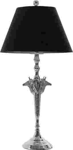 The contemporary Silliman table lamp is perfect alone or in pairs. Finished in polished nickel and is embellished with horse figures.