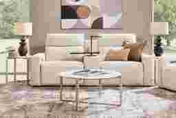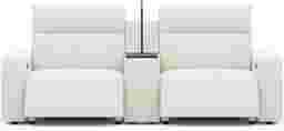 Discover the unlimited possibilities of the dual power reclining ModularTwo, thoughtfully designed with both comfort and flexibility in mind. Contemporary in style and upholstered in woven fabric in silver, its tailored silhouette is enhanced by welted track arms and tufted back cushions for a look of refined elegance and serenity. Each piece is upholstered on all sides, offering endless opportunities for both reconfiguration as well as individual use. Dual power reclining functionality allows for easy adjustment in the headrest and footrest, providing the ultimate in personalized comfort. The console includes a touch-activated reading light and swivel-top wood table with hidden storage for easy access to your lounging essentials. Select a preconfigured design or visit a showroom to learn about individual components and create the modular solution perfect for your space and style. Upholstery: 100% polyester.