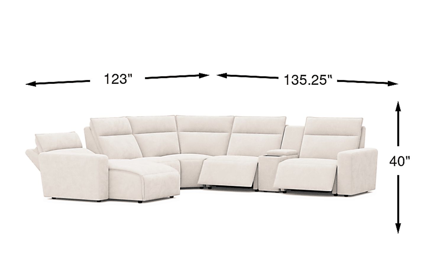 This sectional has a substantial footprint of approximately 135.25"w x 123"d, making it ideal for spacious, open-concept living areas or dedicated home theaters. A significant benefit of its modular construction is the ease of delivery; because the set consists of individual pieces, it is much easier to navigate through narrower hallways or basement staircases than a traditional large-scale sofa.