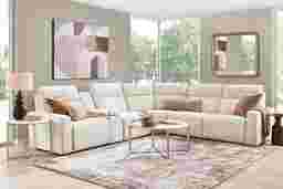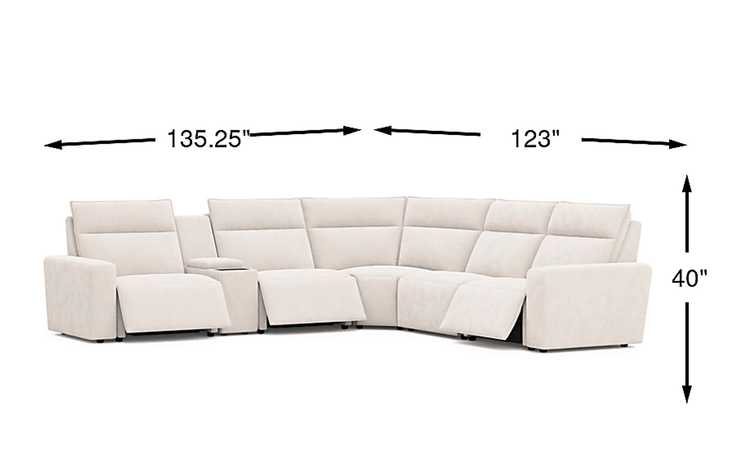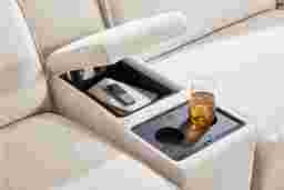 This sectional is engineered for a modern entertainment experience. The built-in media console features a Bluetooth-enabled sound system for seamless audio streaming, integrated wireless charging for compatible devices, and retracting cupholders that maintain a clean, tailored look when not in use. To power these features and the dual power reclining mechanisms, we recommend placing the sectional near a standard wall outlet or using a compatible battery pack for floating floor placements.