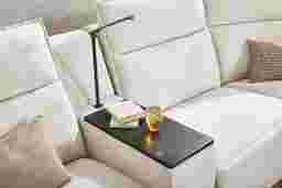 The consoles are designed to serve as a functional command center for your living area. Each includes a touch-activated reading light for low-light environments and a swivel-top wood table. Below the table surface, you’ll find hidden storage, which is ideal for organizing remote controls, charging cables, and other lounging essentials to keep your living room clutter-free.
