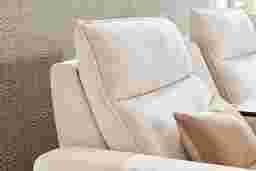 Discover the unlimited possibilities of the dual power reclining ModularTwo, thoughtfully designed with both comfort and flexibility in mind. Contemporary in style and upholstered in woven fabric in silver, its tailored silhouette is enhanced by welted track arms and tufted back cushions for a look of refined elegance and serenity. Each piece is upholstered on all sides, offering endless opportunities for both reconfiguration as well as individual use. Dual power reclining functionality allows for easy adjustment in the headrest and footrest, providing the ultimate in personalized comfort. The console includes a touch-activated reading light and swivel-top wood table with hidden storage for easy access to your lounging essentials. Select a preconfigured design or visit a showroom to learn about individual components and create the modular solution perfect for your space and style. Upholstery: 100% polyester.