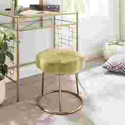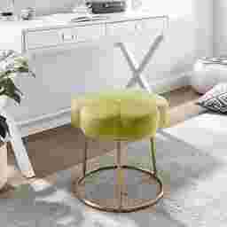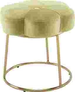 Inspired by boho design, the Silver Lane is a perfect pairing of minimal lines while still conveying a luxurious style. Plush light green velvet is used to create this subtle floral shape that offers soft padding for comfort. The foundation is an elegant gold color plated base. Sitting 17.75 Inches off the floor, this happy stool can fit under a make up vanity, bathroom prep table, desk or really, anywhere. Adds a welcomed pop of color to any room. Multiple colors to mix and match. Customer assembly is required.