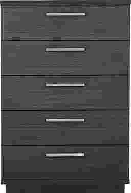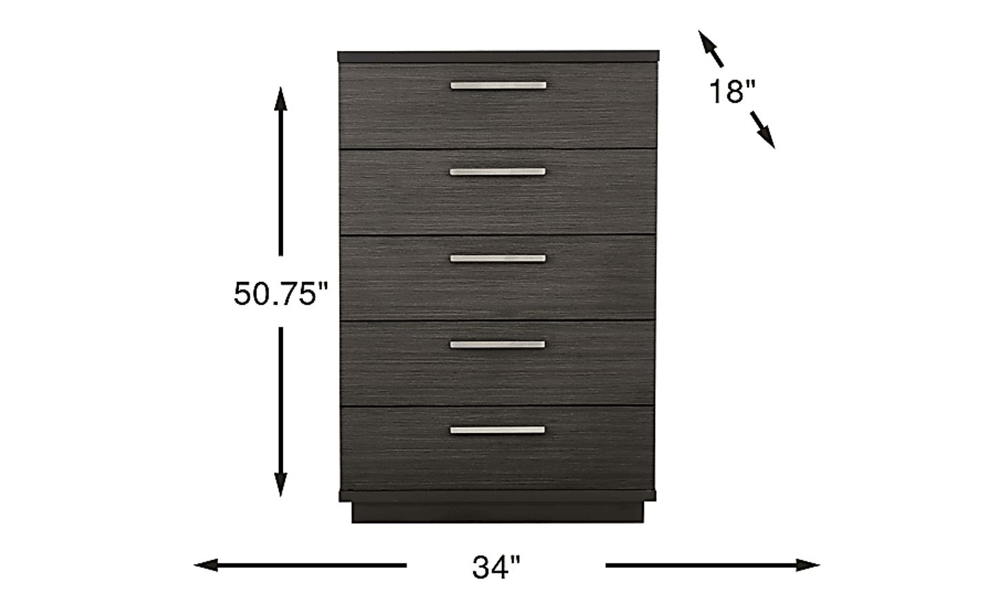 The calm, tailored stillness of a boutique retreat comes home with the Silverchase collection, bringing polished ease to your restful sanctuary. Grounded in traditional style, this chest is finished in a deep dark brown that highlights its richly detailed wood-like grain and clean handsome frame. Five drawers provide ample storage space, while the plinth base and silver metal pulls add a refined sophistication.