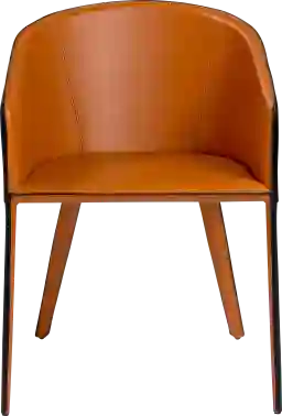 The warm, red-toned cognac color of this chair serves as a sophisticated neutral that pairs beautifully with Earth tones like beige, tan, and olive green. Because it features a contemporary steel frame and track arms, it bridges the gap between industrial and modern aesthetics, allowing it to work well as a "host chair" at the head of a table or as part of a curated, mixed-material dining set.