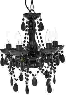 What girl wouldn't love to have this charming Baroque style chandelier in her room? The shimmering black crystals will delight your child. The Simza chandelier's 59 inch cord simply plugs in for super easy installation. The light takes five 25 Watt maximum candelabra bulbs (not included).