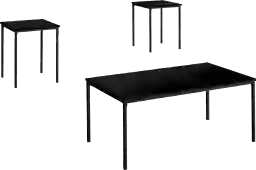 Create a stylish living room setup with this Singletary 3 piece table set. This fashionable set includes one coffee table and two end tables, each with a sleek black laminate top and durable black metal frame. The contemporary design and clean lines of this set will add a modern touch to any living area. The elegant and easy to clean tops are great for everyday use, and the set is easy to assemble with full illustrated instructions included. You will bring an instant update to your home with this on trend coffee table set. Customer assembly is required.