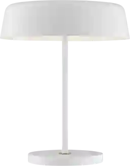 The Sioux Grove White Lamp blends clean contemporary lines with a nostalgic touch. Featuring two bulbs that cast a warm, ambient downlight, it brings both function and charm to your space. The sleek metal shade is elevated with subtle brass accents, adding a sophisticated edge that enhances any room's decor with timeless appeal. Partial assembly may be required.