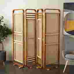 Embrace artistic expression with a design that balances bold lines, neutral elements, and minimalist appeal. The Sirave is crafted from durable teak wood and plastic rattan, this brown partition room divider offers both strength and elegance. Its rectangular frame features a rich oiled brown finish, complemented by light brown woven rattan panels that add texture and warmth. Hinged, foldable panels allow for easy adjustment, making it both functional and stylish. Customer assembly is required.