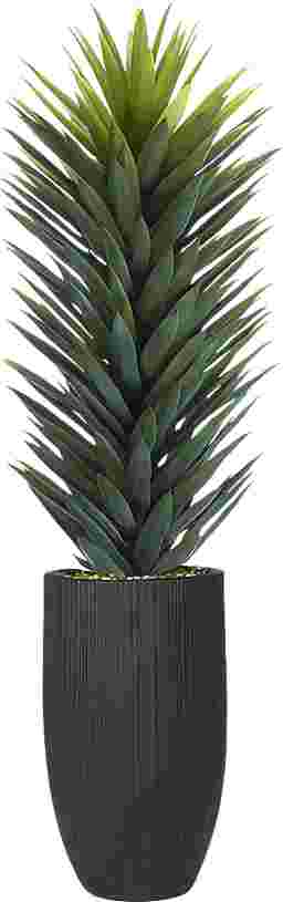 Bring natural charm to your space with the Sisalana artificial agave plant. Standing at an impressive 60 inches high and 19 inches wide, this striking piece features lush, realistic green leaves. The foliage fans out beautifully to resemble the organic structure of a real agave. Crafted for both outdoor and indoor use, this plant is UV protected ensuring it maintains its vibrant look. It comes nestled in a sleek, black fibrecotta planter that adds a modern touch to any setting. Enjoy the beauty of nature without the upkeep. No watering, no pruning-just effortless style.