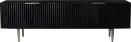 Modernize your media storage with the Sisemore black console. A wide top offers plenty of space for decor pieces or spare remotes, while two spacious cabinets neatly tuck away movies and video games. Perfect for your small space or open concept floor plan, this narrow cabinet works as the centerpiece in your media room or as a stylish accent in your living space. Blend functional design and convenient storage when you bring home this black console. Customer assembly is required.