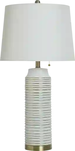 Introduce a cozy touch to your living room or bedroom with the Siti White Lamp. Its ceramic base is complemented by a fabric shade, lending an air of casual elegance to your space. Perfect for your office or entryway, the metal details add a touch of contemporary style. This beautiful table lamp offers a welcoming ambiance ideal for settling down with a good book or creating a cozy mood for conversations. Partial assembly may be required.