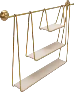 Decorate an empty wall in your abode with this chic Skiatook 3-tier shelf. Inspired by a set of swings and made into an elegant shelf with a gold finish and a clear gloss. The swing base is made of wood with a white finish to neutralize the gold finish on the metal. A stunning balance of color and complimentary shelf sizes, perfect to display the small decor pieces you adore.