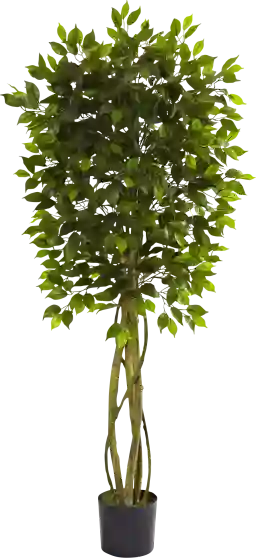 This piece is crafted for a lifelike appearance, featuring more than 800 individual leaves and multiple trunks that mimic the natural growth patterns of a real ficus. The intricate trunk detailing and dense foliage provide a lush, organic texture that enhances casual and contemporary decor styles.