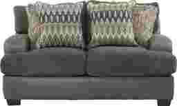The stylish contemporary design of the Skyline Drive loveseat upgrades your living room while offering a cozy, comfortable seat. Gray textured seat and back cushions add contrast to the smooth base and are reversible for convenience. Decorative toss pillows, included, combine a variety of textures and patterns in coordinating shades of brown and gray. 100% Polyester