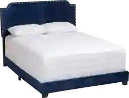 Indulge your sophisticated tastes with the Skylyn bed. The luxe and glamour-inspired design of the bed is evident in its eye-catching details. The Skylyn's frame is built to last with solid rubberwood and engineered wood. The frame and sumptuous headboard are upholstered in velvet upholstery. The foam-padded headboard features a chrome finished nail head trim, adding yet another element of luxury to the Skylyn. Customer assembly is required.