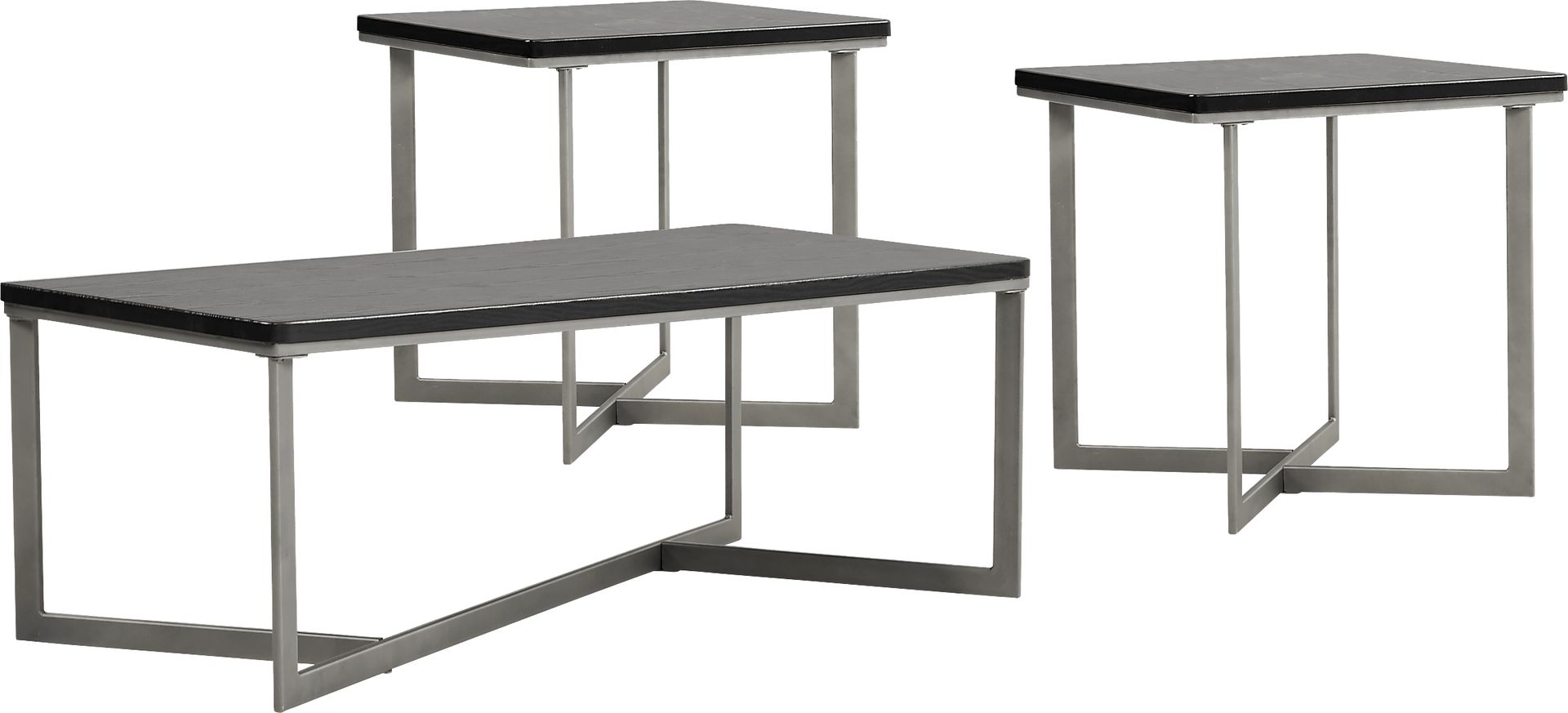 You'll love the contemporary design of the Slater table set. The sturdy metal base of each piece features clean lines and sharp angles for a superb architectural look. Topped with a smooth black surface, the rounded edges add a polished look to the chic, tailored design.