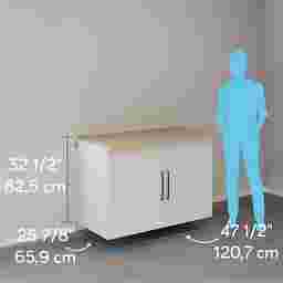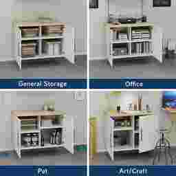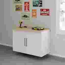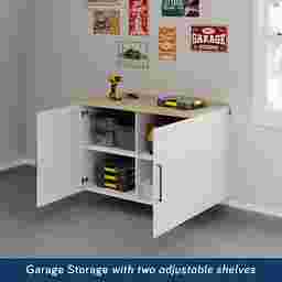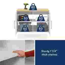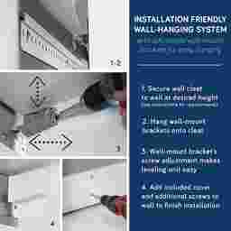 Maximize every inch of available space with the Smartwaven white and brown storage cabinet. This cabinet with doors mounts securely to the wall with a metal rail system and cabinet braces, providing stress-free installation, a professionally installed look and easy cleaning underneath, in addition to protection from water and debris. The two adjustable shelves of this storage cabinet feature 1.25 inch thick, strong and lightweight panel construction, with a bottom shelf that will hold up to 60 pounds. The surface of this wall cabinet is heat, stain, and scratch-resistant, offering long-lasting durability and dependability in your space. Customer assembly is required.