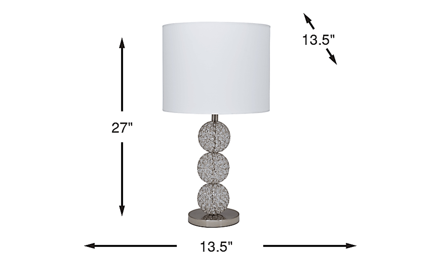 Let the Snowball lamp enhance your space with glamorous appeal. A versatile barrel shade sits atop a glittering, contemporary-inspired silver base for high end appeal, while a three-way switch and 100 watt bulb capacity ensures just the right amount of light.