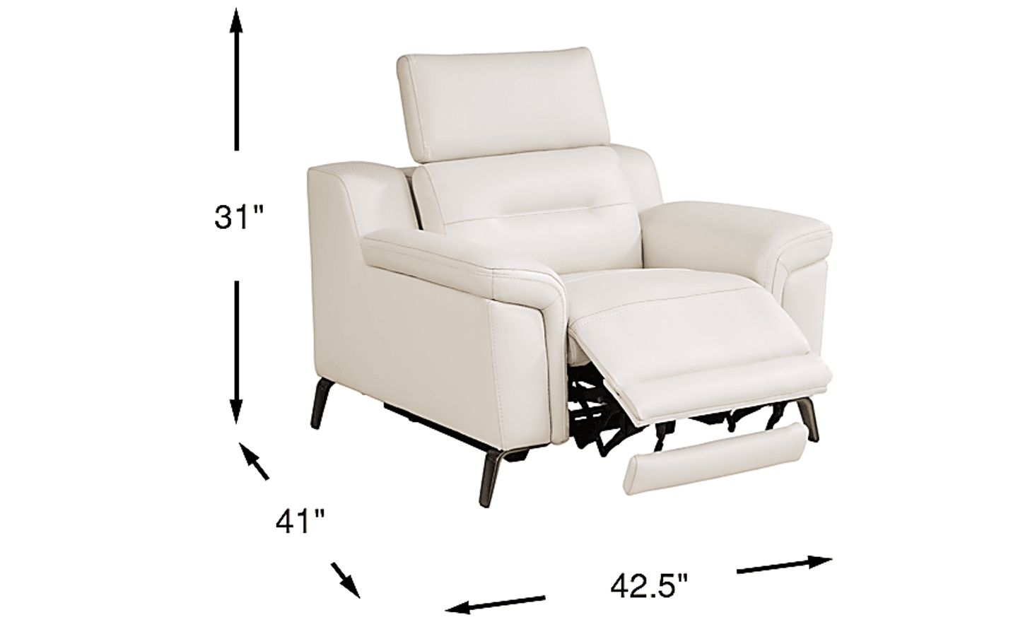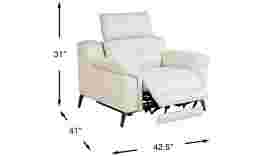 Park Avenue luxury and refinement comes home with the in-the-now Castella dual power recliner. Upholstered in rich, opulent top grain ivory leather where the body touches, its high resiliency seat webbing and attached seat cushion deliver immeasurable comfort year after year. Dual power, zero gravity reclining provide the leisurely indulgence of a Manhattan loft, operated by a DC power system for added in-home safety. The stylish flair arms are accompanied by padded outside arms and back and tall, tapered legs for the final flourish of contemporary opulent living. Upholstery: Top grain leather where the body touches and polyurethane fabric sides and backs.