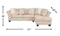 Bring stylish, contemporary looks influenced by transitional elements into your home with the timeless Claremont sectional. Upholstered in a soft, woven fabric in an attractive beige color, this sectional transforms any space into a relaxing haven. Flare arms and nailhead detail bring an elegant appeal to this sectional making it a must have for any modern living space while reversible seat cushions ensure this sectional is as long lasting as its style. 100% Polyester