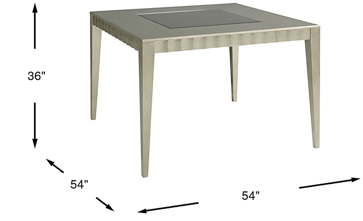 Glam meets practical in the Delanco counter height dining table. Crafted of wood solids and birch veneers rendered in a glazed pewter finish, this leg style table is sized-right at 54 inches. Featuring elegant scalloped detailing along the edges, the tabletop includes a tinted mirror inset for a special touch. Sleek tapered legs complete the transitional design of this stylish table.
