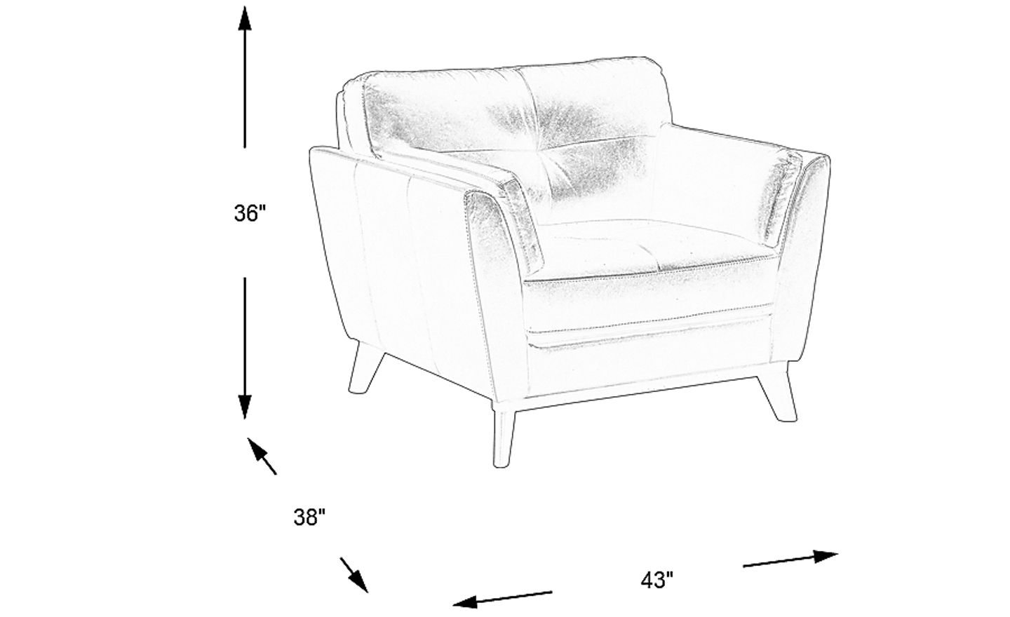 Offering plush comfort with a midcentury modern twist, the Gabriele chair upholstered in supple top grain leather where the body touches in a chic shade of gray. Elegant tufting detail and brown finished tapered flared legs add a stylish touch to this comfortable seat. Top grain leather where the body touches and vinyl sides and backs.