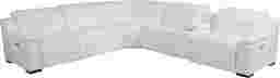 Sit in the lap of luxury with the sumptuous comfort and good looks of the contemporary Gallia Way sectional. Seating up to five adults, this chic sectional is upholstered in premium white top grain leather wherever the body touches. Dual power adjustable headrests and footrests allow you to relax with the touch of a button, while plush tufted back cushions and padover chaise style footrests feel like a dream come true. Convenient cup holders and storage in the console, plus built-in charging USB ports on the end recliners cater to your every need. Chic, smart and comfortable: what more could you ask for? Upholstery: Top Grain Leather where the body touches with Vinyl sides and backs.