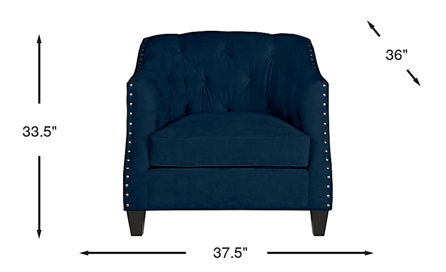 Chic, sleek and sophisticated, the Monaco Court chair makes an elegant impression. Upholstered in plush navy blue fabric tastefully embellished with nailhead trim along the arms, this stylish chair combines luxurious tufting on the seat back and interior arms, crisp welted seat cushions and sleek tapered legs for a modern twist on classic design. 100% Polyester.