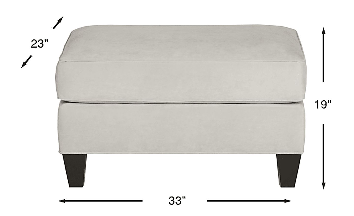 Offering a plush, versatile touch of sophistication to your living space, the Monaco Court ottoman is as luxurious as it is practical. Upholstered in plush oyster white fabric with crisp welted seams, this sumptuous ottoman is equally cozy as an additional seat as it is a footrest. Chic tapered legs add a modern touch. 100% Polyester.