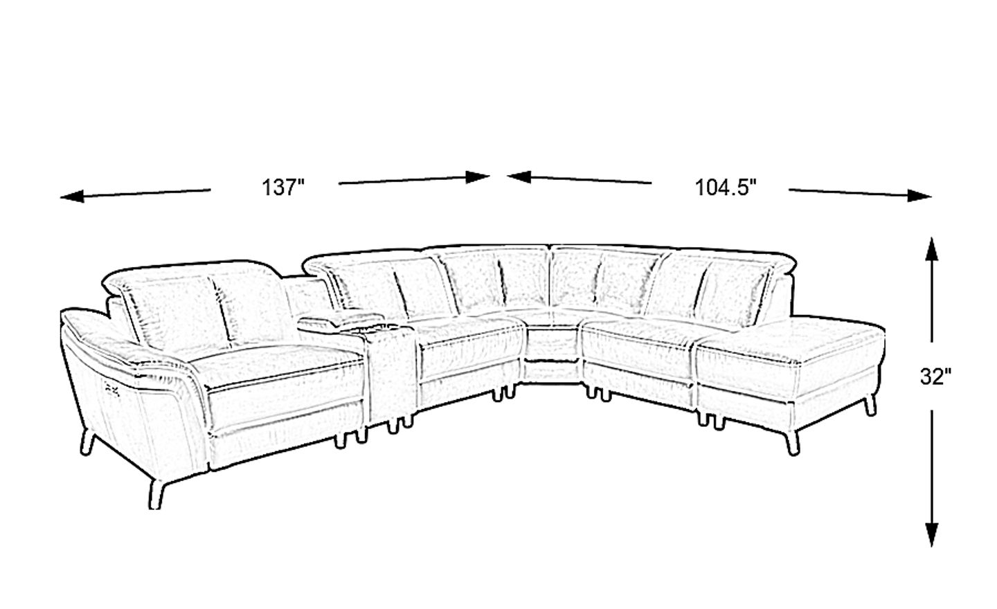 Naples Leather 6 Pc Dual Power Reclining Sectional