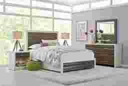 With its sleek styling and unique multi-dimensional paneling, the Santa Fiora panel bed is anything but ordinary. Crafted of wood solids and oak veneers, this contemporary bed's contrasting gray and white finish give it a chic, high end look that allows you to sleep in style. Mattress and foundation (if required) sold separately.