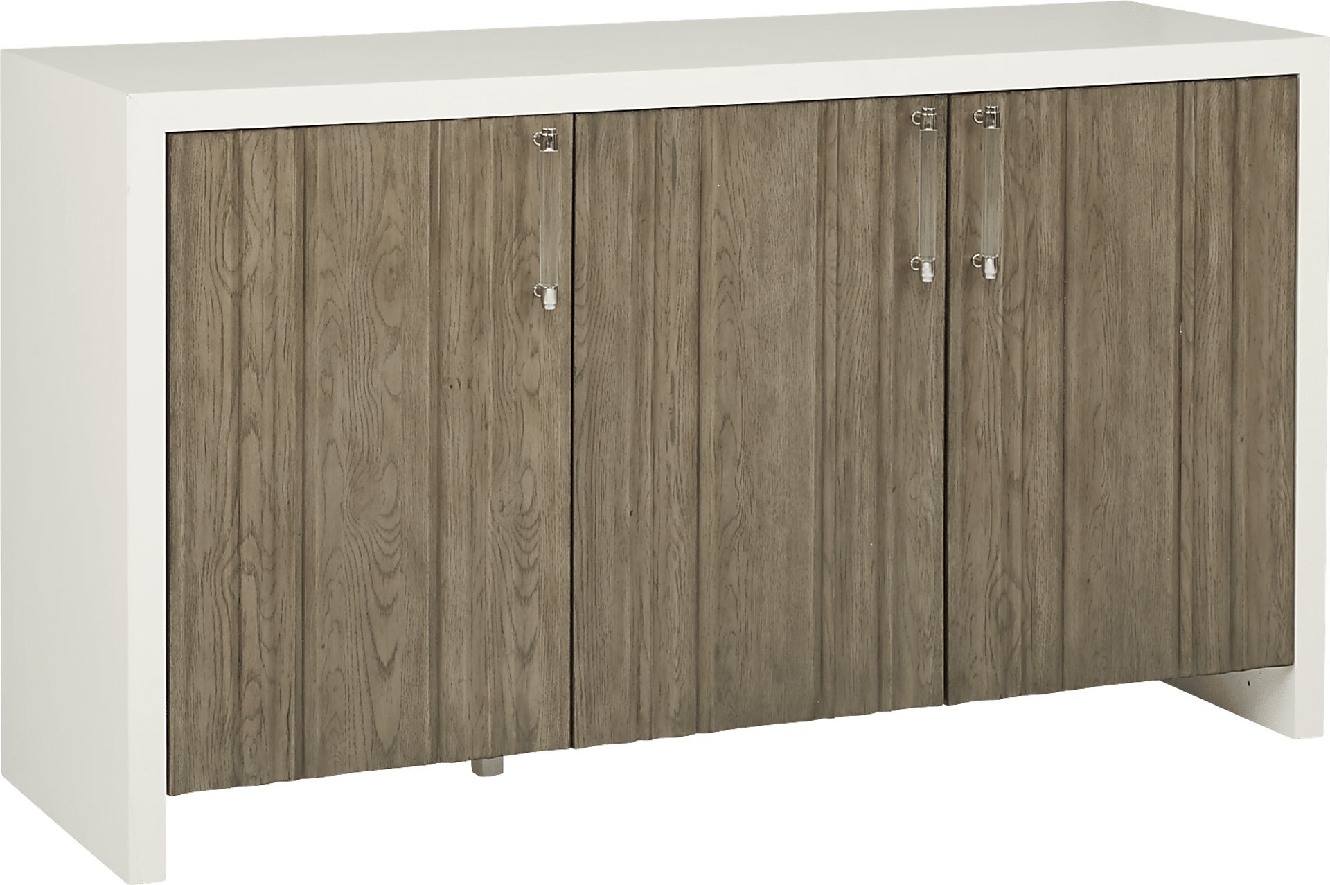 Boasting a sleek look, the Santa Fiora server introduces modern style to storage. Crafted of wood solids and oak veneers, the chic white wood contrasts beautifully with two-tone gray and white finished doors. With two drawers and adjustable shelves tucked away for added storage space, this server pairs convenience with gorgeous design.