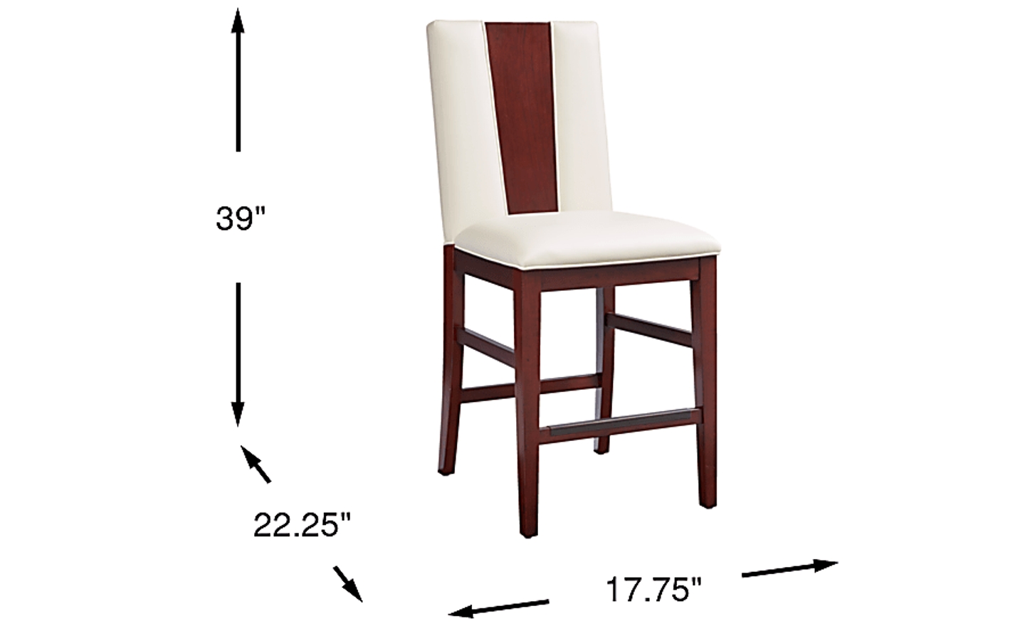 Modern design at its finest. The Savona wood back counter height stool's contemporary approach to comfort allows you to have your cake and eat it too. Upholstered in supple and easy-to-clean UltraHyde fabric in a sophisticated ivory color, this sleek stool is nicely balanced by a cherry finished base and chic inset panel on the chair back. Plush and stylish, what's not to like?