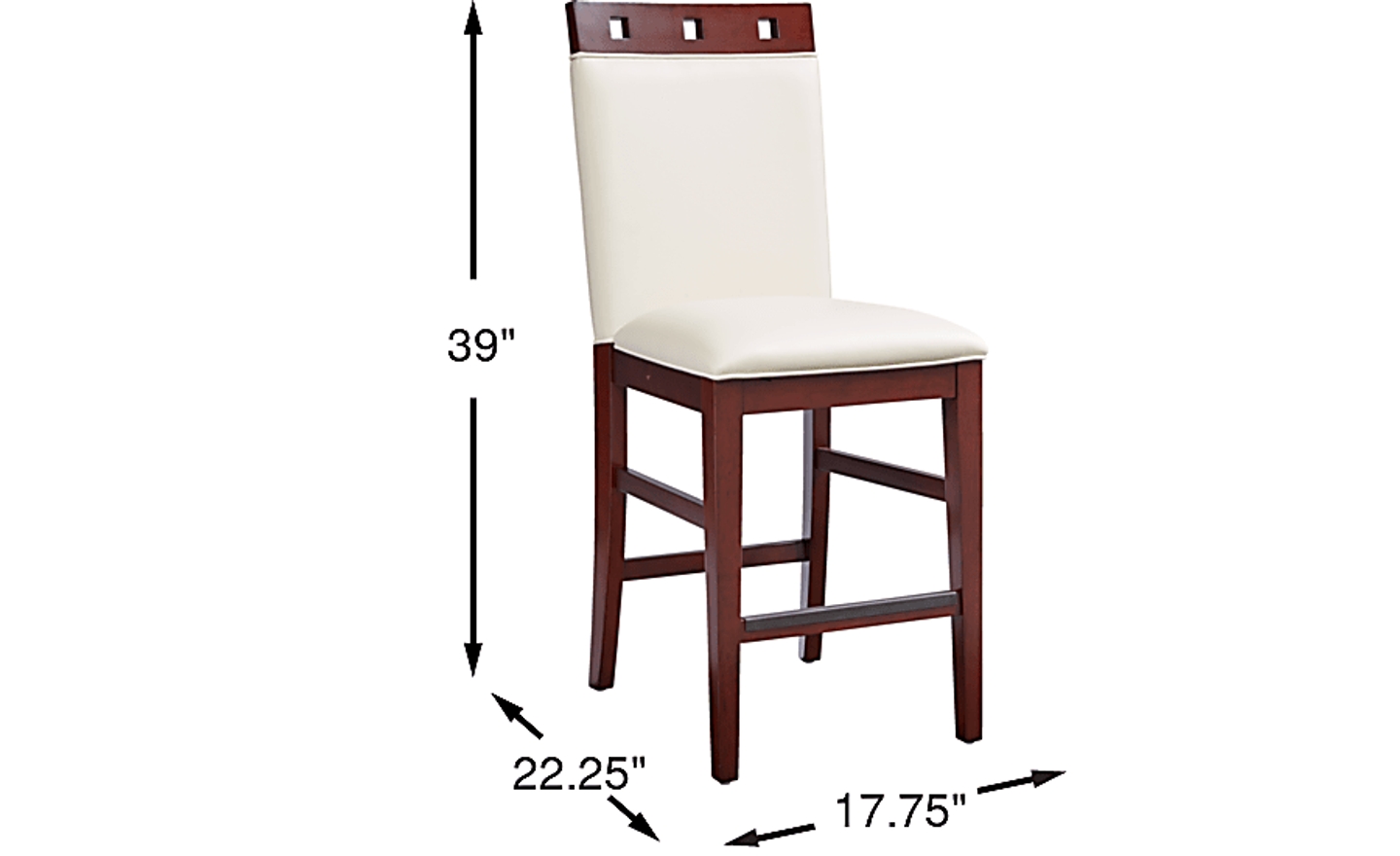 Modern design at its finest. The Savona wood top counter height stool's contemporary approach to comfort allows you to have your cake and eat it too. Upholstered in supple and easy-to-clean UltraHyde fabric in a sophisticated ivory color, this sleek stool is nicely balanced by a cherry finished base and top rail featuring three chic cutouts. Plush and stylish, what's not to like?