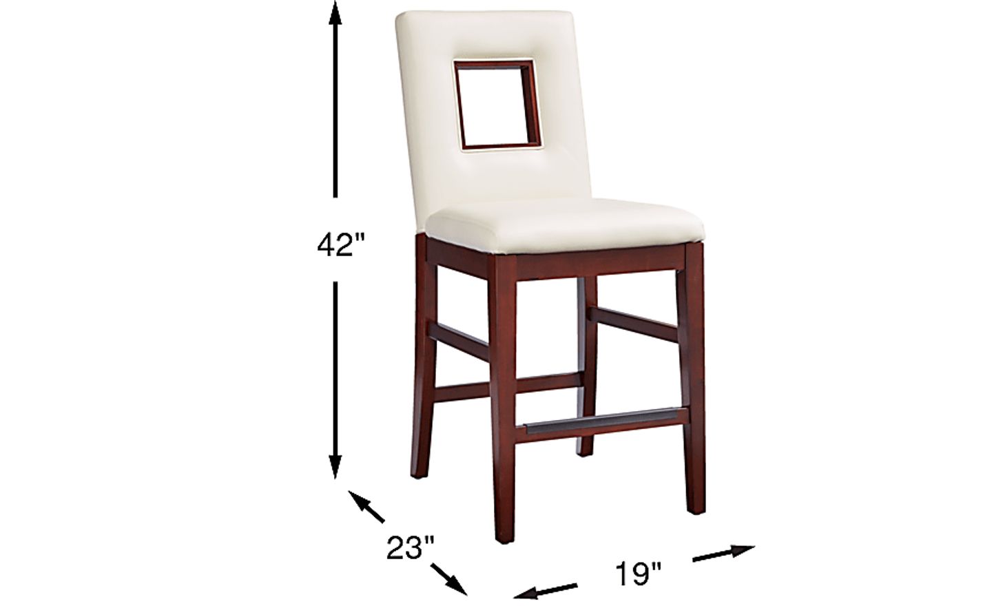 Modern design at its finest. The Savona upholstered counter height stool's contemporary approach to comfort allows you to have your cake and eat it too. Upholstered in supple and easy-to-clean UltraHyde fabric in a sophisticated ivory color, this sleek stool is nicely balanced by a cherry finished base and chic rectangular cutout on the chair back. Plush and stylish, what's not to like?