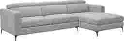 Modern elegance with a contemporary twist, the Sorrento sectional offers indulgent comfort with a side of quality. Upholstered in dove gray soft woven fabric, this sectional is far from ordinary thanks to special touches such as quilted back cushions, ratchet style headrests, contrasting stitching and sleek chrome finished legs. Seating up to three adults, this luxurious sectional takes center stage in any living space. 100% Polyester.
