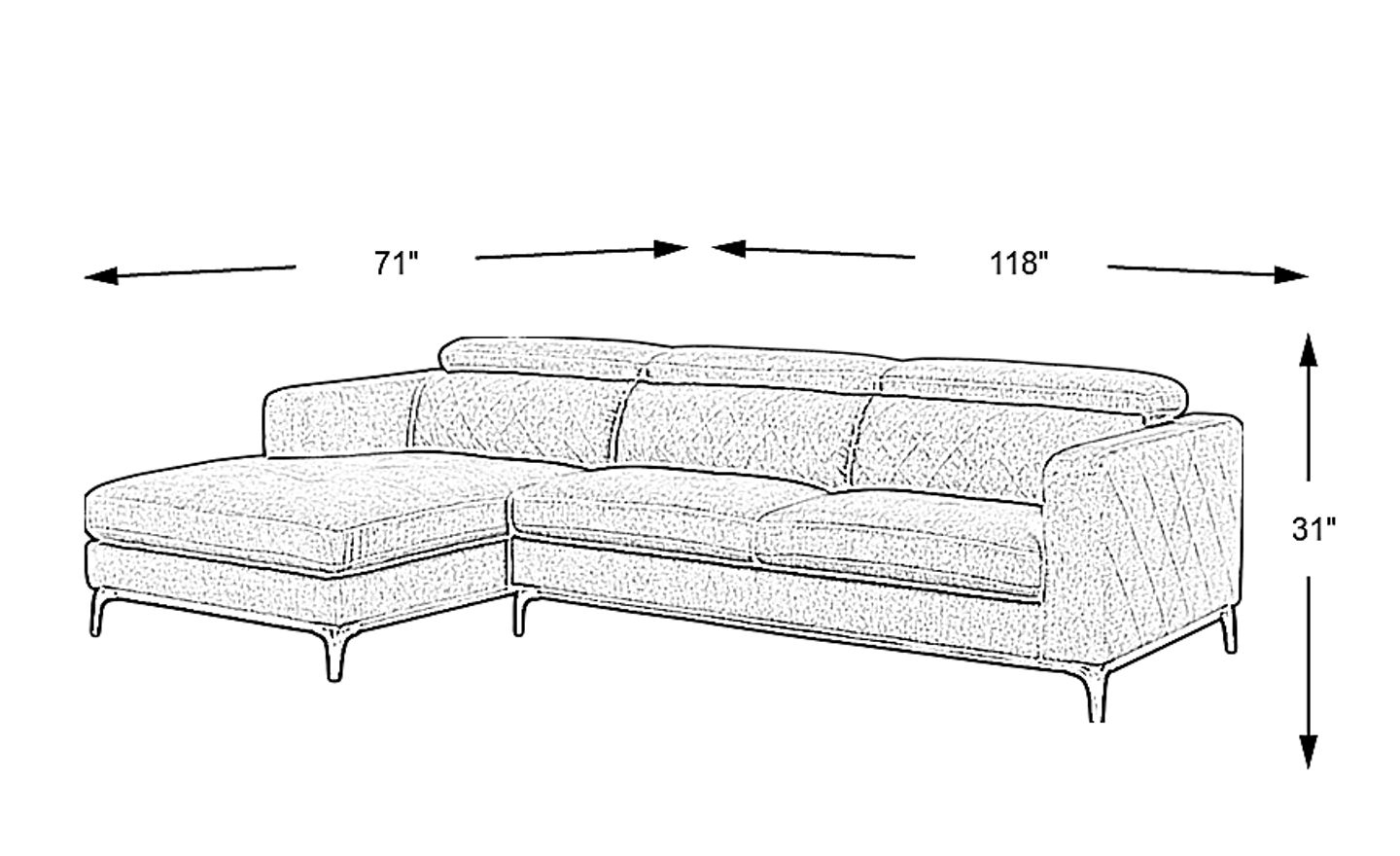 118"w"w x 71"d"d x 31"h"h