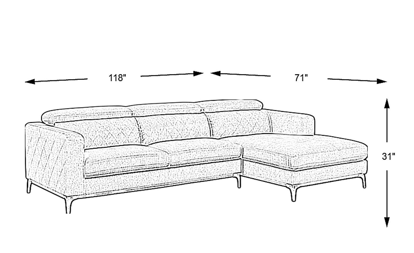 118"w"w x 71"d"d x 31"h"h