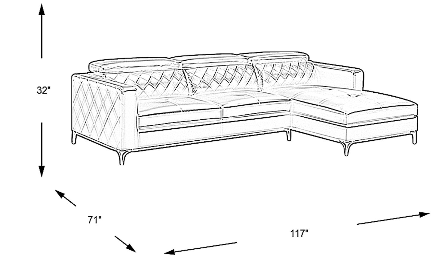 Modern elegance with a contemporary twist, the Via Sorrento sectional offers indulgent comfort with a side of quality. Upholstered in soft navy fabric, this sectional is far from ordinary thanks to special touches such as quilted back cushions, ratchet-style headrests, contrast stitching and sleek chrome-finished legs. Seating up to three adults, this luxurious sectional takes center stage in any living space. Upholstery: 85% Polyester, 15% Polyurethane