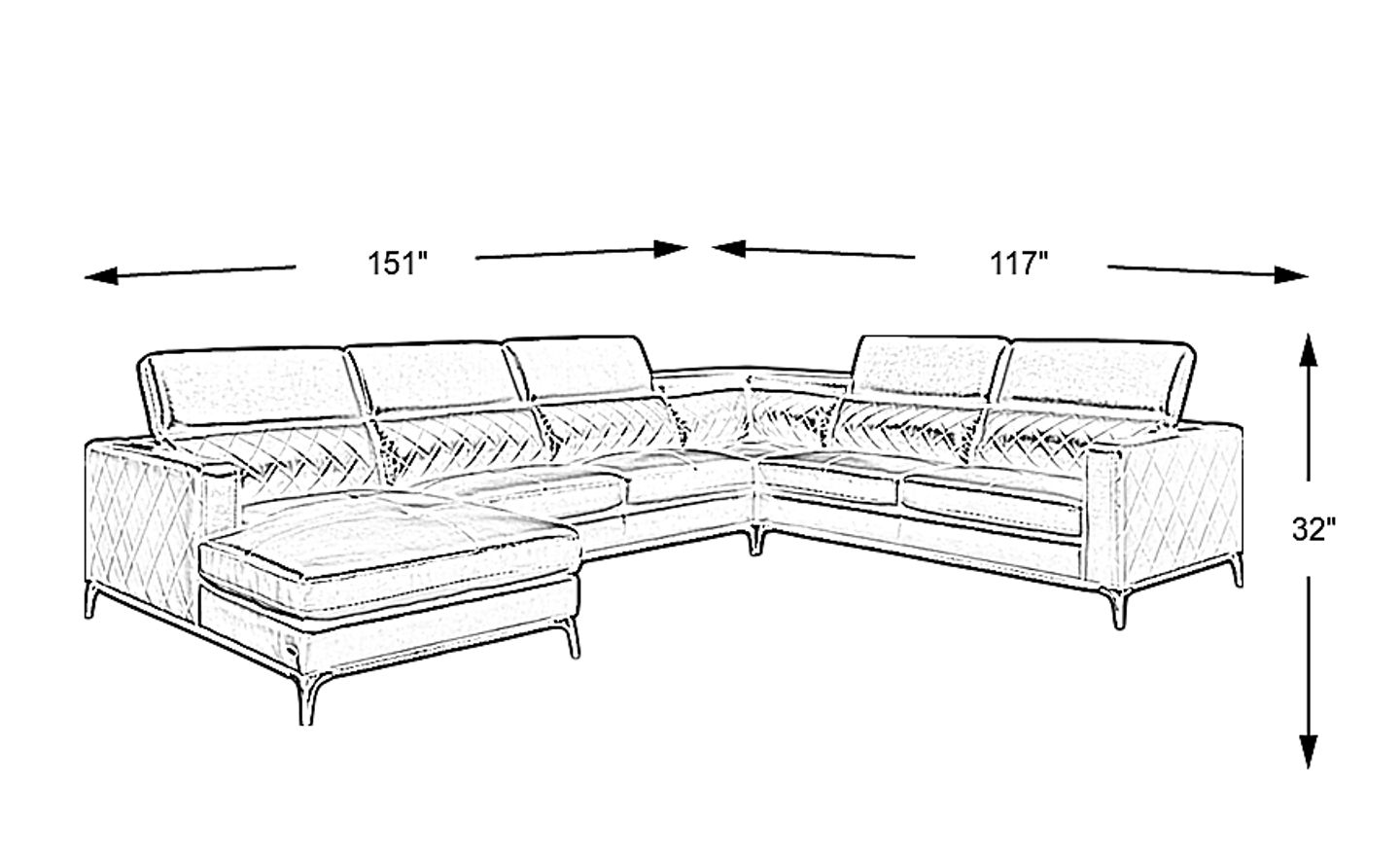 151"w"w x 117"d"d x 32"h"h