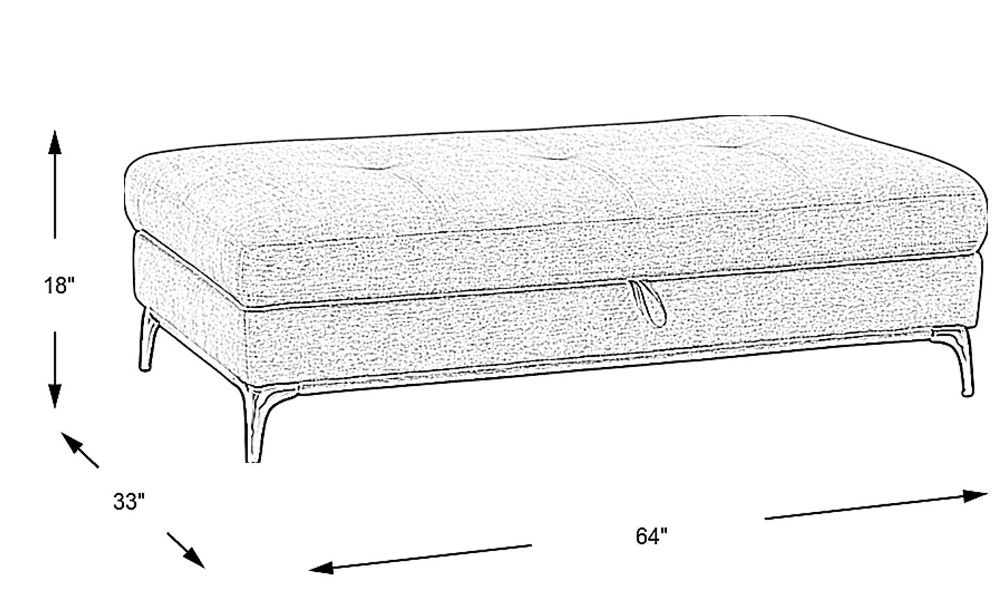 Far from your ordinary ottoman, the chic Via Sorrento storage ottoman is a versatile and stylish addition to your living space. Boasting an elegant contemporary design, this practical piece is upholstered in platinum high performance fabric and embellished with contrasting stitching, soft tufting detail and sleek chrome finished legs. And thanks to its ample size, this storage ottoman not only offers extra seating for two, but also provides plenty of storage space for blankets and other belongings. Upholstery: 85% Polyester, 15% Polyurethane