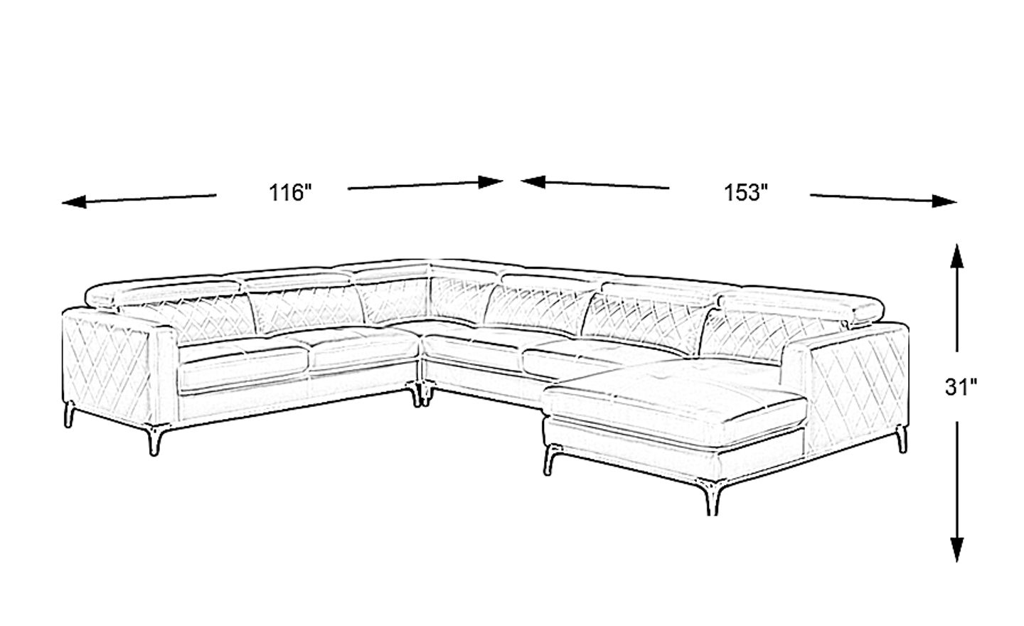 153"w"w x 116"d"d x 31"h"h