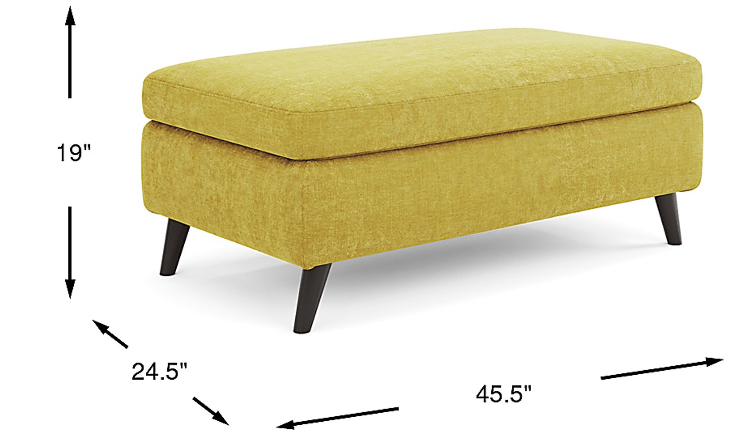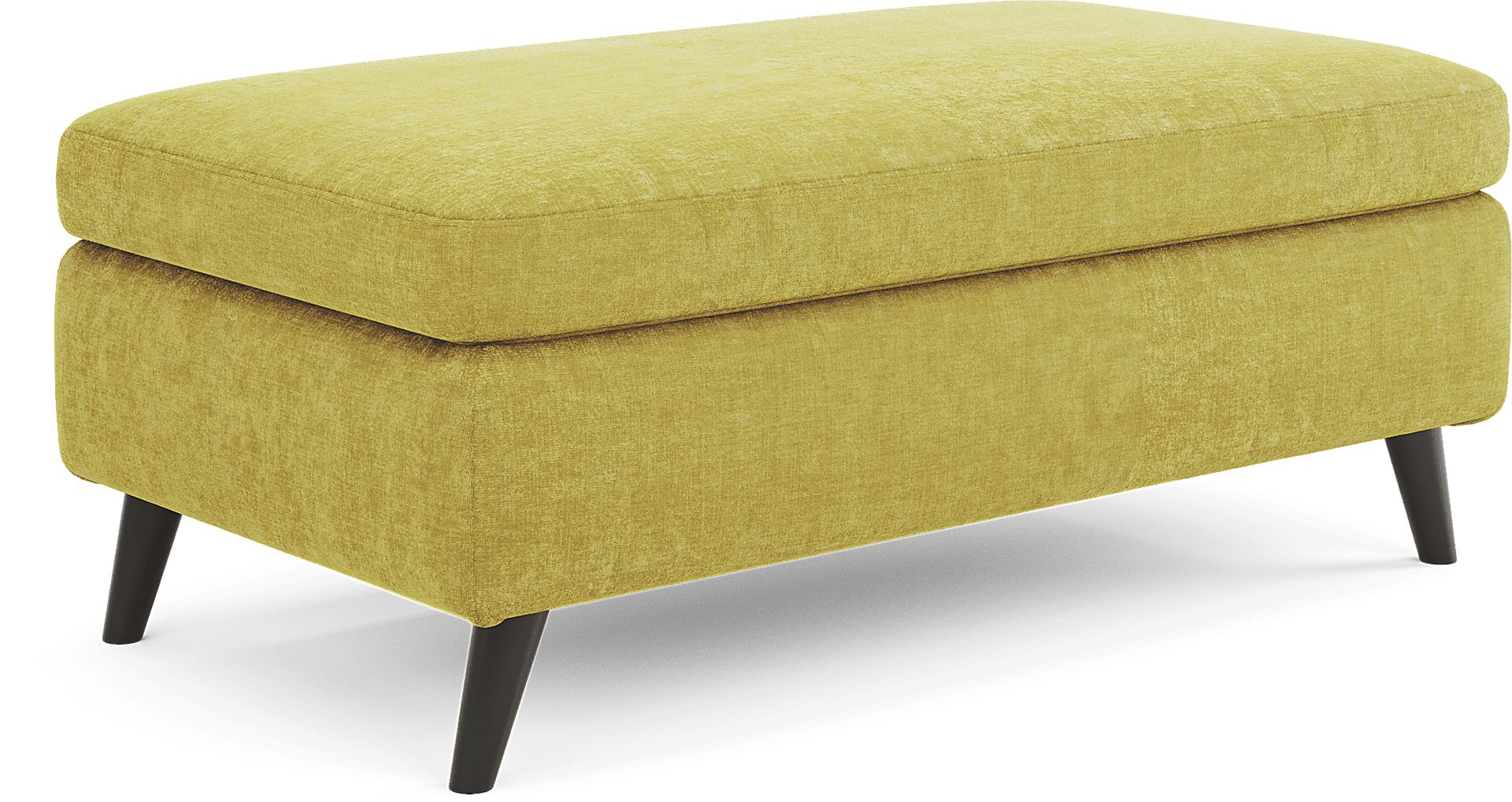 Characterized by sleek design, the West Loft ottoman has a stunning style. Upholstered in soft chenille fabric, this piece has a rich citron color that brightens up the room. Tapered wooden legs with an espresso finish add an elegant touch. Whether used as a footrest, cocktail table or extra seat, this ottoman is sure to find its place in your home. Upholstery: 100% Polyester