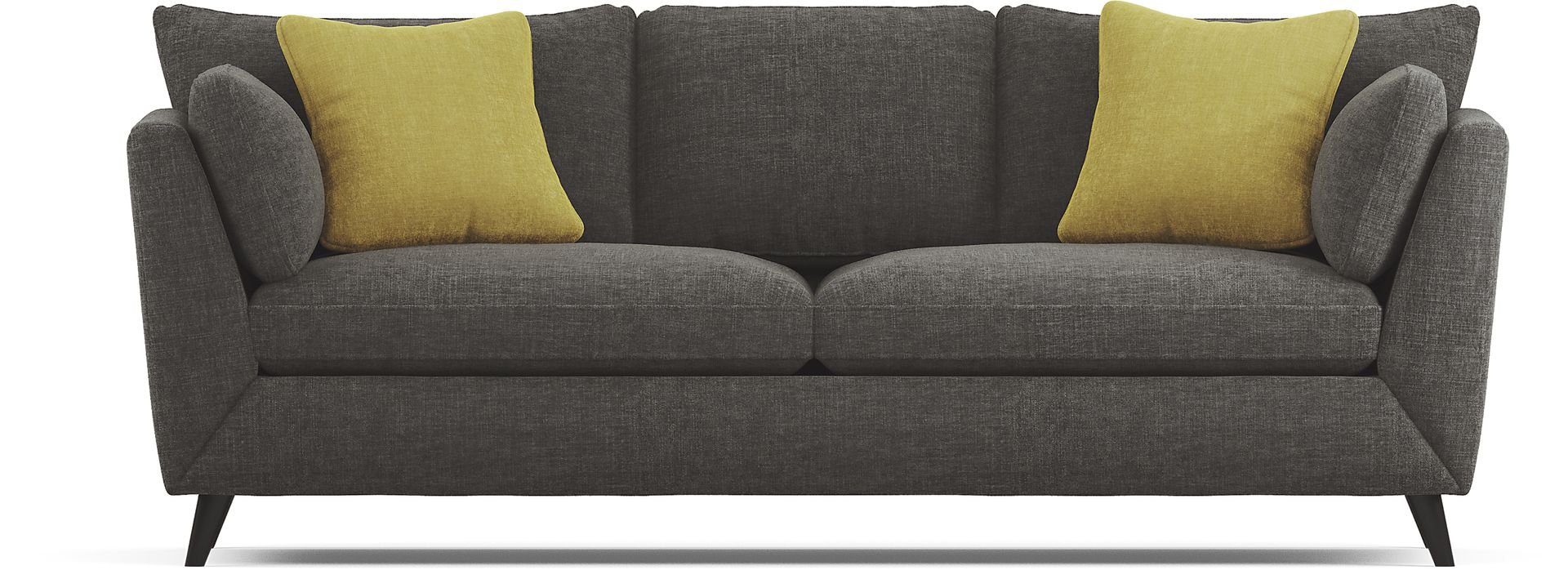 Drawing from mid-century modern design, the West Loft sofa offers sophisticated style for your space. Upholstered in soft chenille fabric, this piece has a versatile slate gray color. Retro-inspired wedge arms and tapered wooden legs with an espresso finish add an elegant touch. For visual interest, colorful accent pillows with a contemporary pattern are included. Loose seat cushions deliver fashion and function, helping your sofa last longer. Upholstery: 100% Polyester