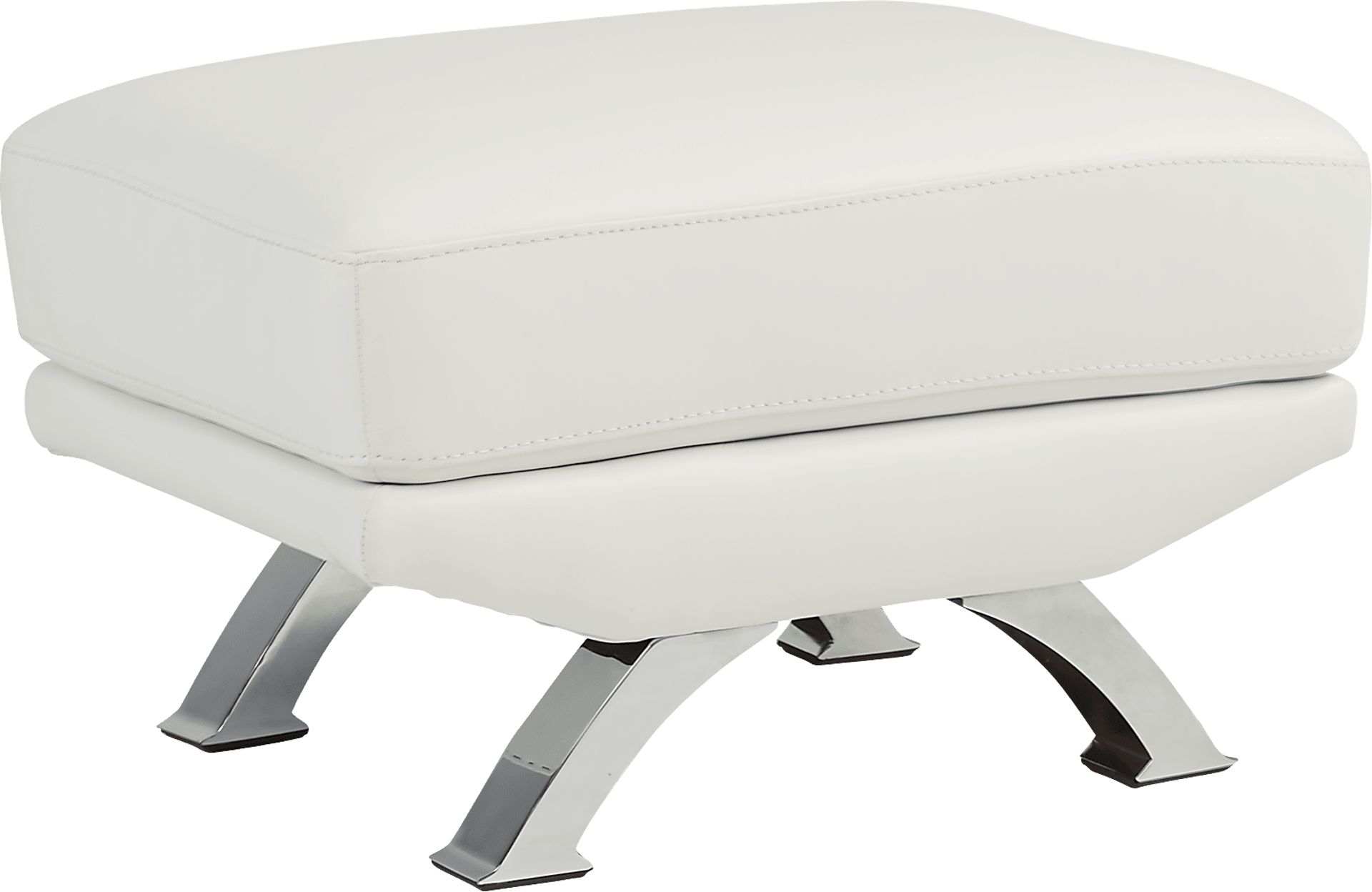 The perfect addition to your living space, the Zamora ottoman offers indulgent comfort in a stylishly sophisticated package. This sleek ottoman is covered in sumptuous top grain leather where the body touches, beautifully accented by chrome finished legs for a delightfully contemporary result. Perfect as a footrest or extra seat, this chic white ottoman is a modern must-have. Upholstery: Top grain leather where the body touches and polyurethane fabric sides and backs.