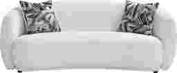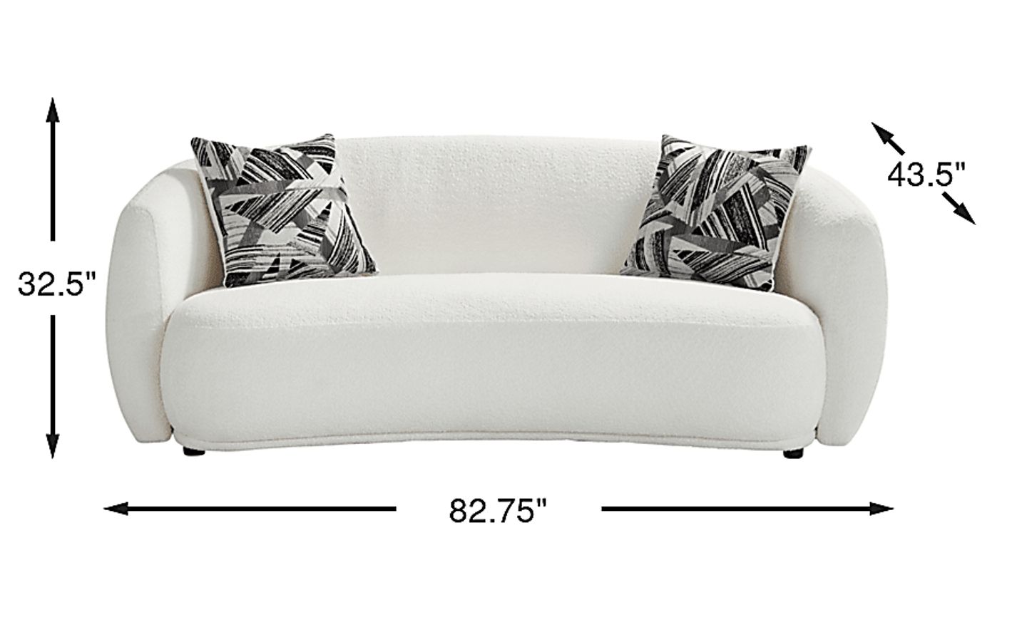 Enhance your home with the Soho Avenue sofa. Modern in design, this piece adds a minimalistic yet eye-catching touch to any space. Crafted with an ultra-low profile, Soho Avenue pairs casual comfort with modish appeal. A large bench cushion provides spacious seating while the curved design and arched tuxedo arms add futuristic flair in white knitted fabric.