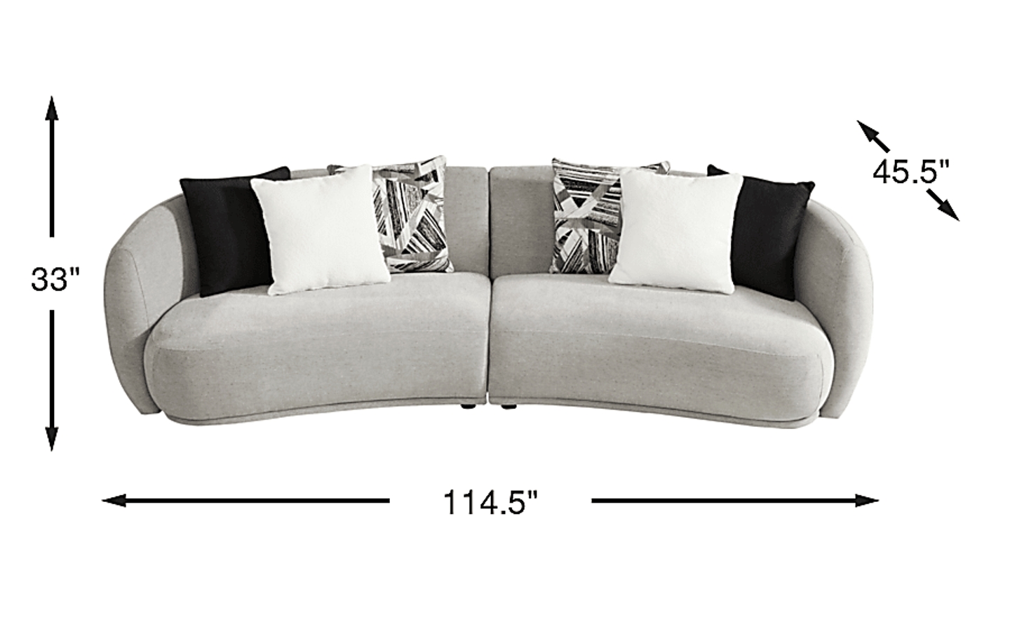 Modern in design, Soho Heights adds a minimalistic yet eye-catching touch to any space. Fashioned with an ultra-low profile, this sectional pairs casual comfort with modish appeal. Large seat and back cushions provide spacious seating while the curved silhouette and arched tuxedo arms add futuristic flair. Black, gray and ivory accent pillows add contrast again the platinum gray knitted fabric. Upholstery: 100% Polyester.